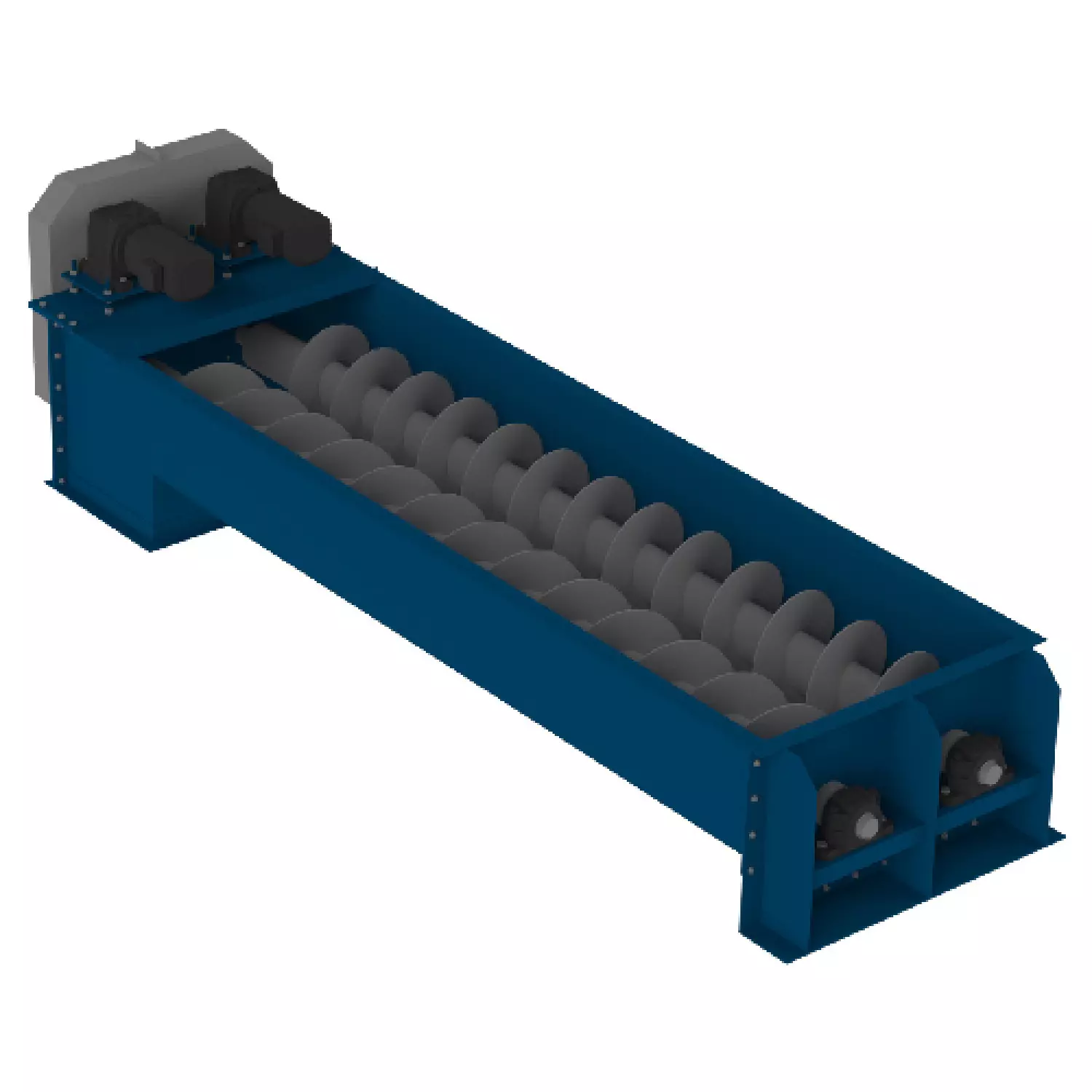 These conveyors can move materials horizontally or at slight inclines without spillage. The twin screws rotate in either the same or opposite direction depending on application requirements, providing effective mixing, compaction, or discharge control along the trough length. This flexibility makes them common in chemical plants, food processing units, and fertilizer manufacturing.